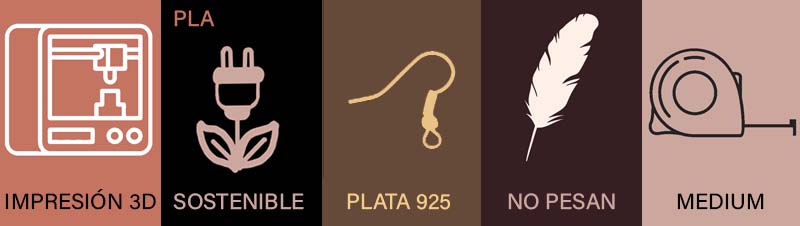 Además, los pendientes cuentan con detalles en plata de ley, que aportan un toque clásico y sofisticado. Los engarces de plata añaden no solo resistencia, sino también un brillo inconfundible que contrasta y complementa el dorado del PLA, creando un equilibrio visual de lujo y modernidad. Esta combinación de materiales asegura que los pendientes no solo luzcan increíbles, sino que también tengan una durabilidad que permite disfrutarlos durante años.