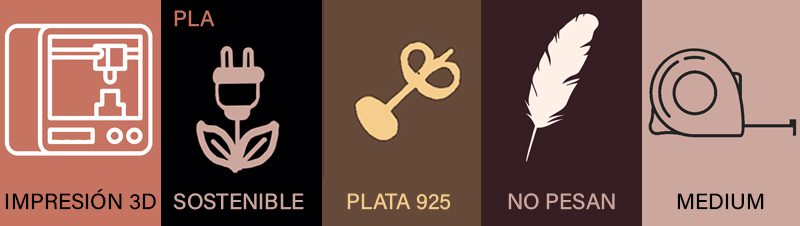 Su ligereza, gracias al PLA, permite un uso prolongado sin generar incomodidad, mientras que el anclaje de plata proporciona estabilidad y seguridad. Estos pendientes han sido diseñados para quienes buscan una pieza única que combine estética, significado y compromiso con el medio ambiente.